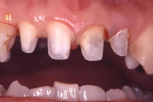 症例2−審美障害と咀嚼(そしゃく)障害で来院されました。![]() 処置前(上あご)