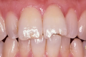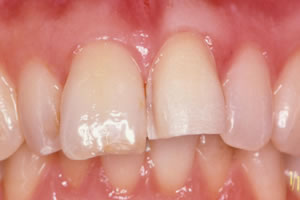 症例3(ラミネートベニヤ)−事故で歯の一部を破折され、来院されました。![]() 処置前